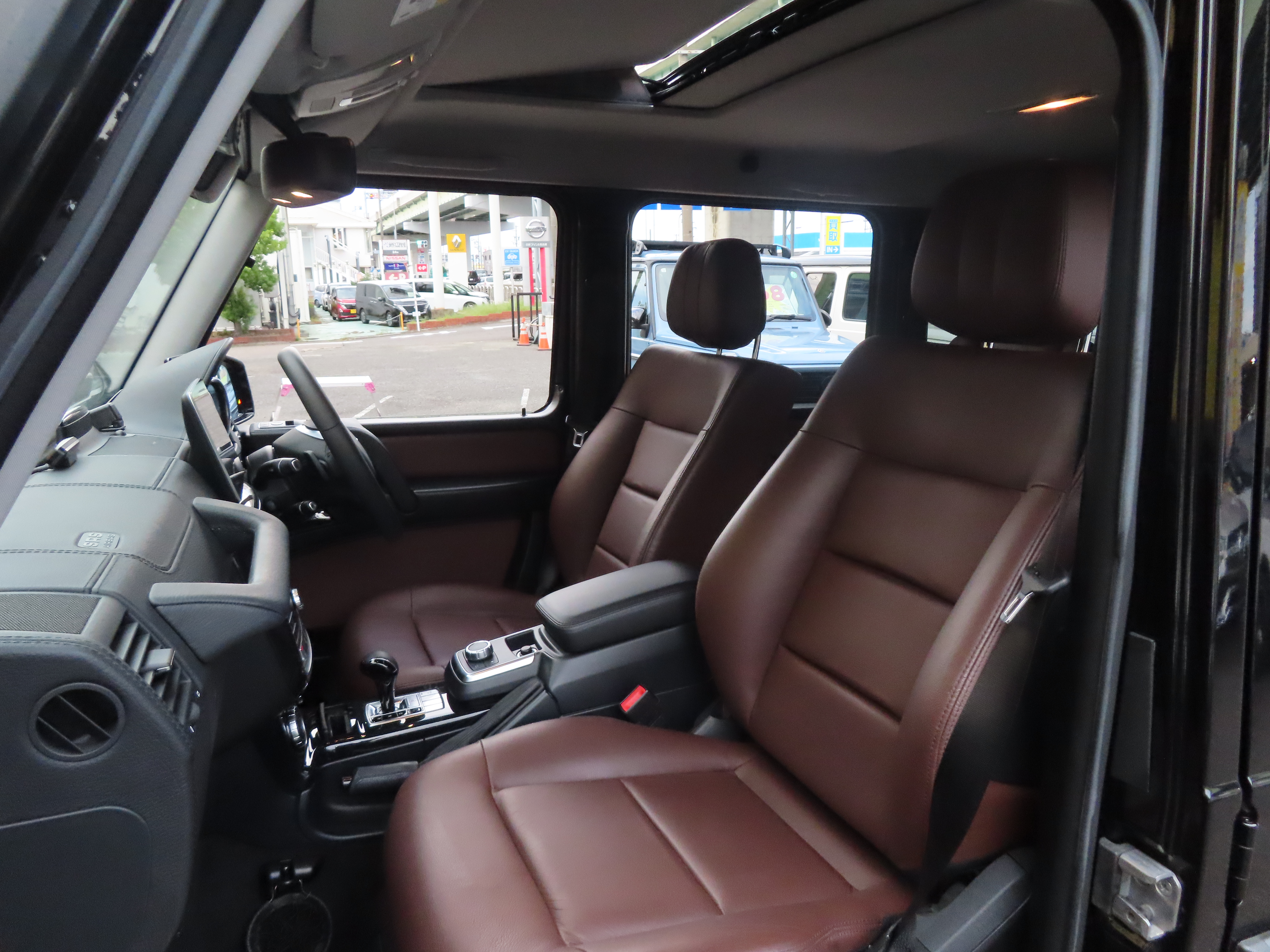 2017y メルセデス・ベンツ G350d ラグジュアリーパッケージ 1オーナー 禁煙 サンルーフ 茶革シート シートヒーター ハーマンカードン ブラインドスポットモニター バックカメラ G550用ヒマラヤグレーホイール Bluetooth 25,000キロ入庫です。