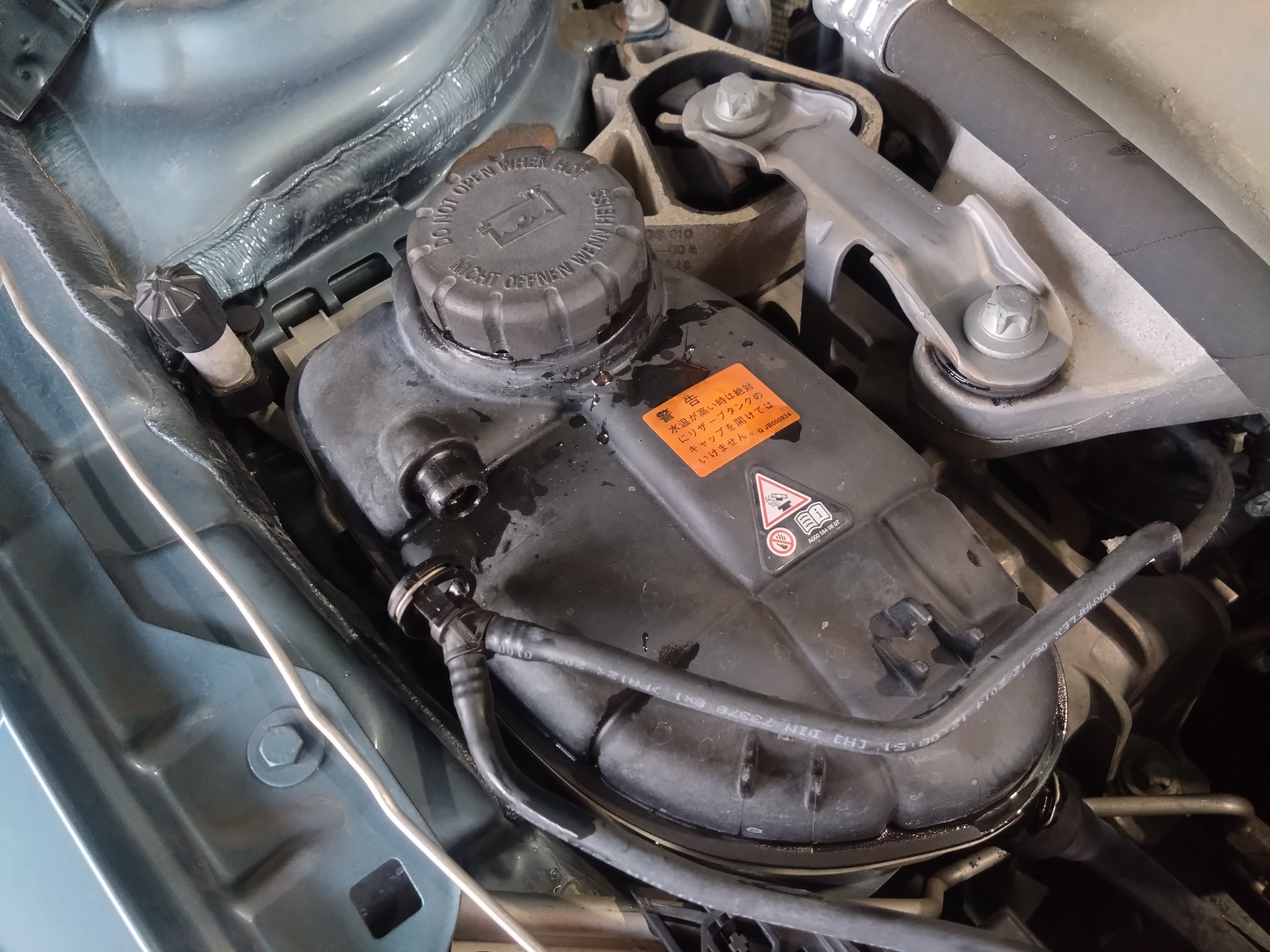 ベンツ W176 A180 Aクラス クーラント警告灯、オーバーヒートによる修理