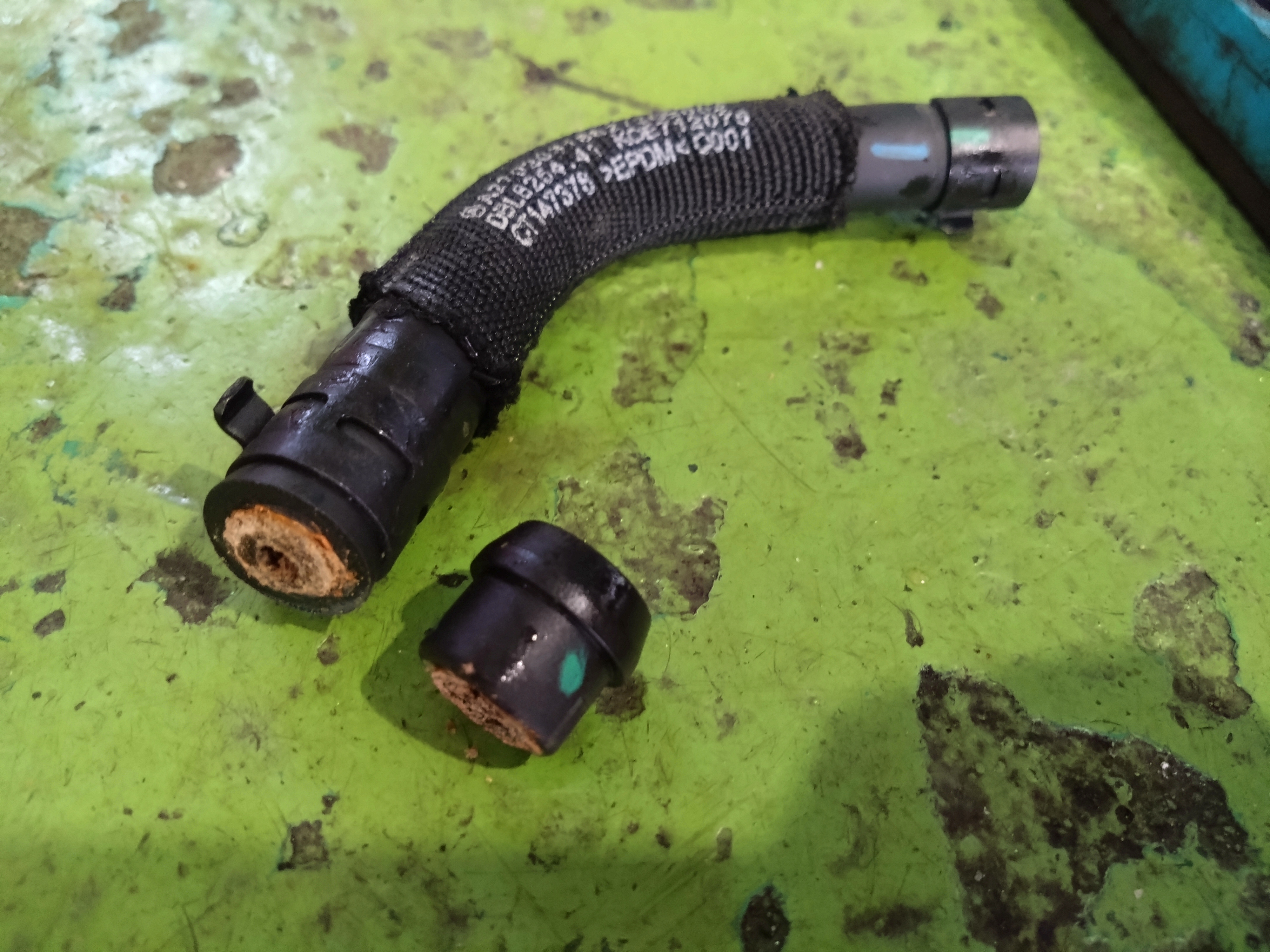 ウォーターホースの劣化がひどくて、圧がかかりすぎて少しづつ漏れた跡もあり。