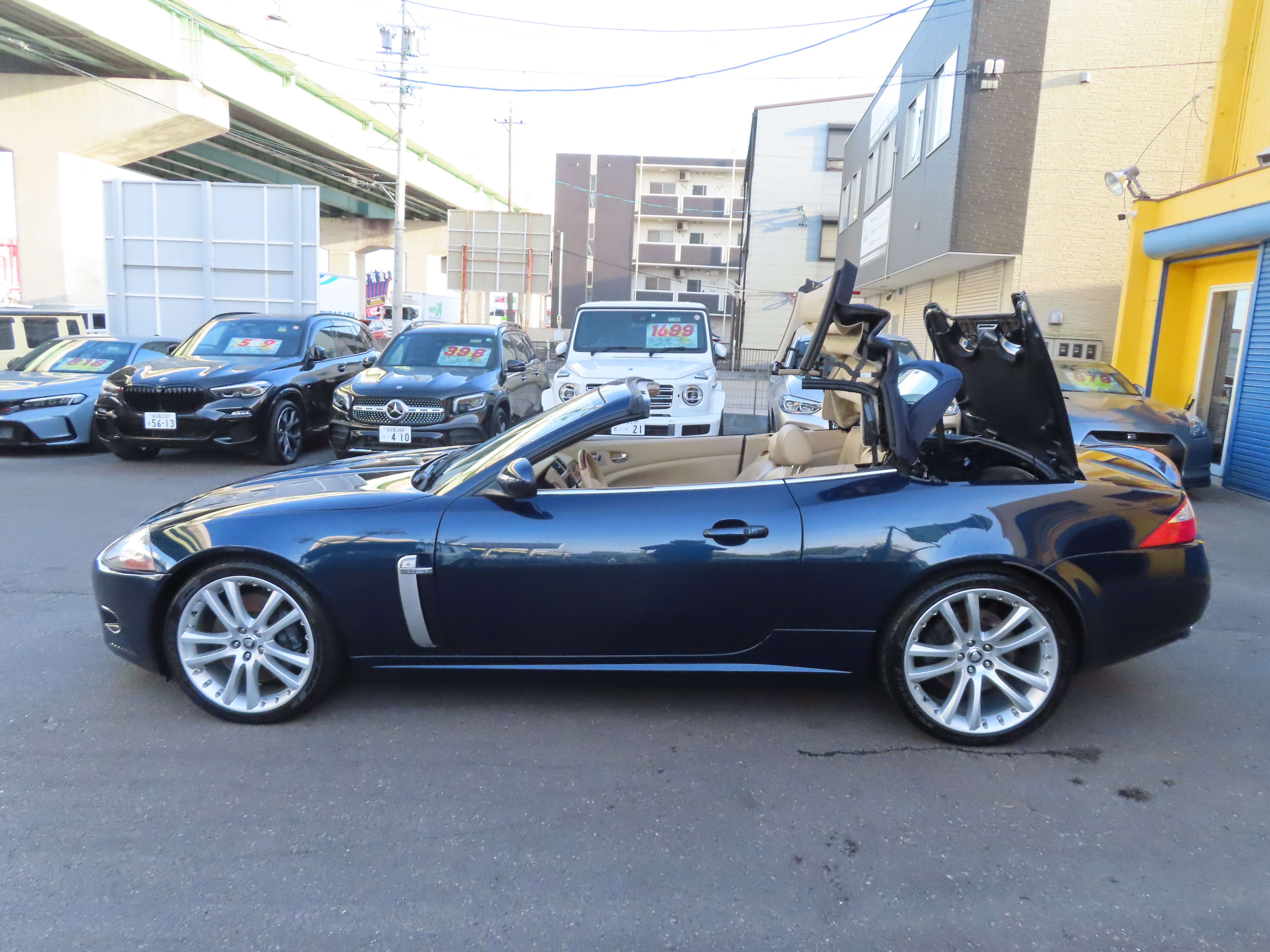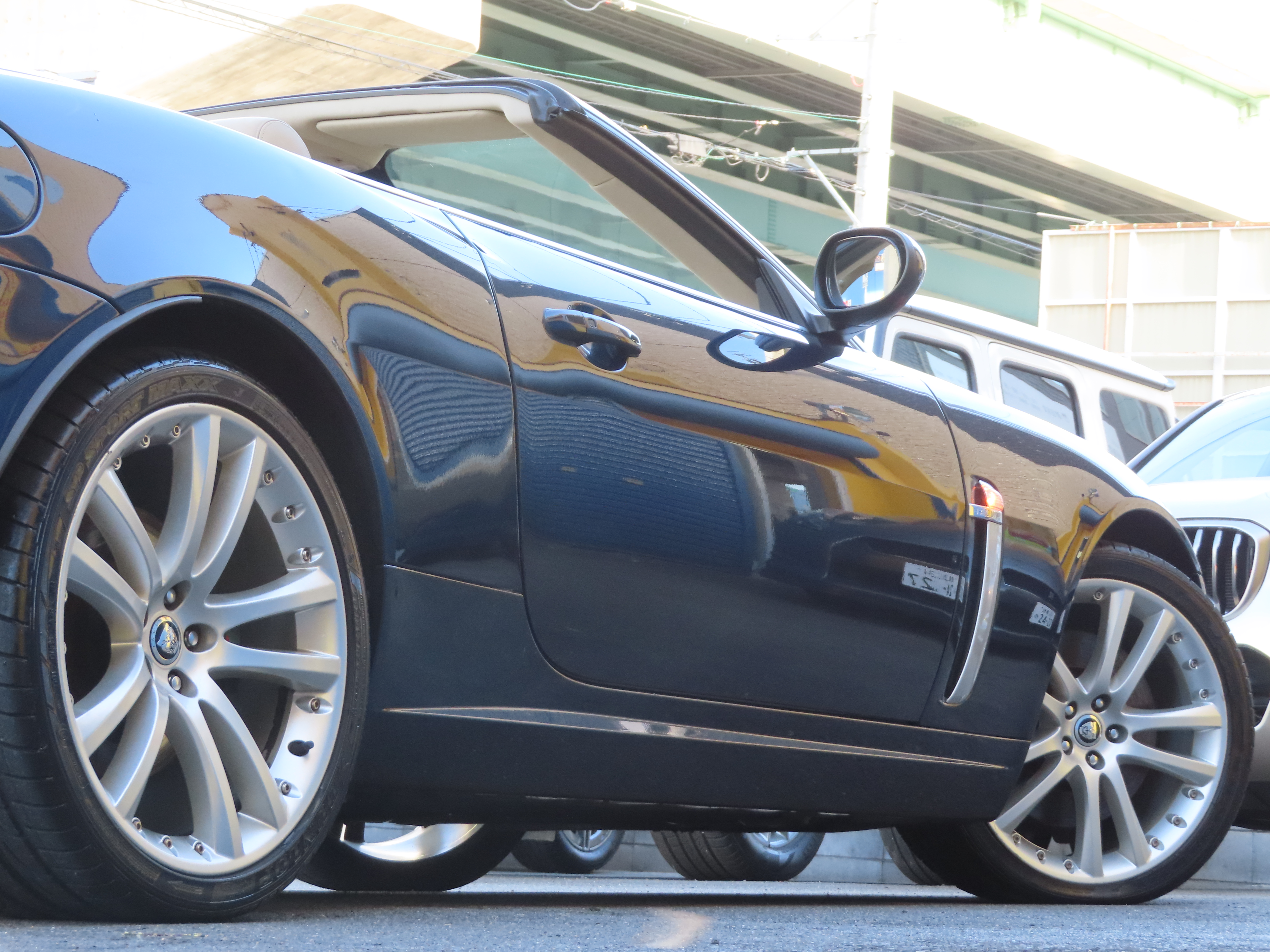 2008y ジャガー XKRコンバーチブル 左ハンドル ベージュ革 青幌 シートヒーター ステアリングヒーター 禁煙車 純正アルミホイール 3メモリーパワーシート プッシュスタート 電動格納ミラー ETC パークセンサー 取説 保証書 32,000キロ入庫です。